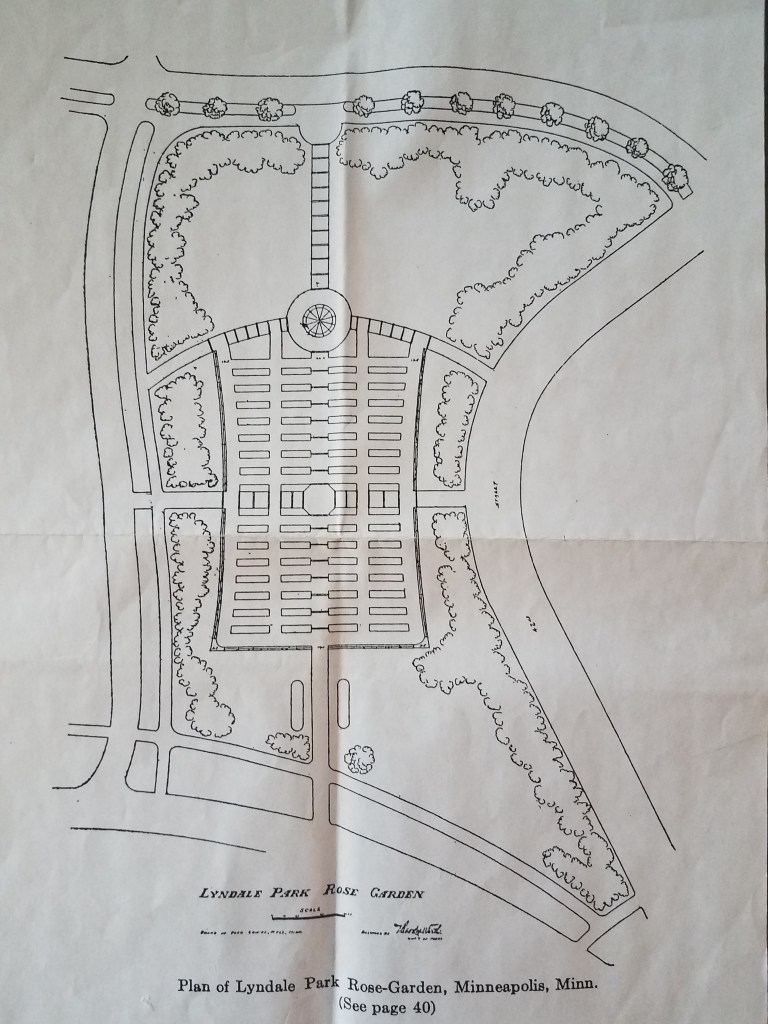 The second map is from 1940, and the third from 1947. These blueprints have more detail and include numbered list of the roses and their locations. They also give some information as to the names of the park board officials of the time.